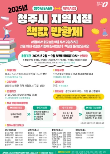 시에 따르면 책값 반환제는 청주시도서관 정회원으로 가입한 시민이 지역 서점에서 책을 사 읽은 뒤 반납하면 책값을 환불해주는 서비스입니다.