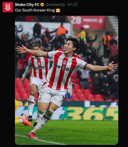 [스토크시티 X 캡처. 재판매 및 DB 금지]잉글랜드 2부리그 챔피언십 스토크시티의 배준호가 스완지시티 공격수 엄지성과의 '코리안 더비'에서 이번 시즌 첫 골을 터트렸습니다.