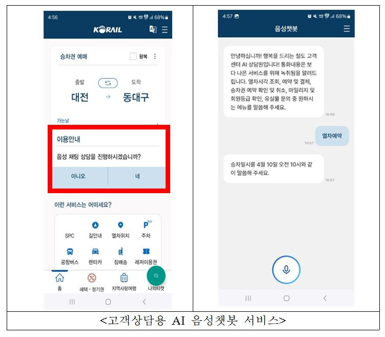 코레일이 시각·지체 장애인을 위한 승차권 예약 AI 음성 챗봇 서비스를 도입했습니다.