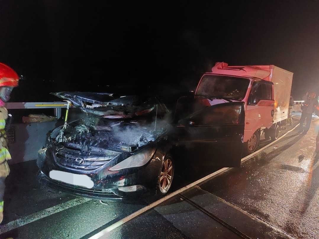 [영월소방서 제공]어제(11일) 저녁 8시 20분쯤 강원 영월군 남면 각한터널 인근에서 연달아 교통사고가 났습니다.