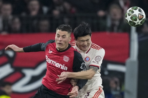[AP/연합뉴스 제공]김민재가 돌아와 풀타임 활약한 바이에른 뮌헨이 레버쿠젠을 제치고 유럽축구연맹 챔피언스리그 8강에 진출했습니다.