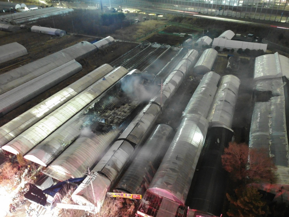 오늘(12일) 저녁 7시 반쯤, 대전 유성구 노은동의 한 화훼 단지 내 비닐하우스에서 불이 났습니다.