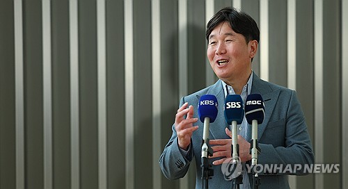 (영종도=연합뉴스) 김도훈 기자 = 류지현 한국 야구 대표팀 감독이 20일 인천국제공항 제1터미널 출국장에서 월드베이스볼클래식(WBC) 전력 분석차 대만으로 출국하기 전 취재진과 인터뷰하고 있다.류 감독은 대표팀 감독 취임 후 첫 공식 활동으로 대만, 니카라과, 스페인, 남아프리카공화국 등 4개국이 출전하는 2026 WBC 예선전을 관전하고 귀국할 예정이다. 2025.2.20 superdoo82@yna.co.kr