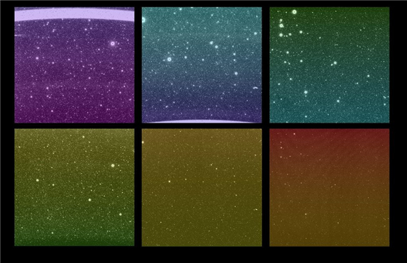 이번에 공개한 6컷의 이미지는 광시야망원경인 스피어엑스가 관측한 전체 시야를 보여줍니다.