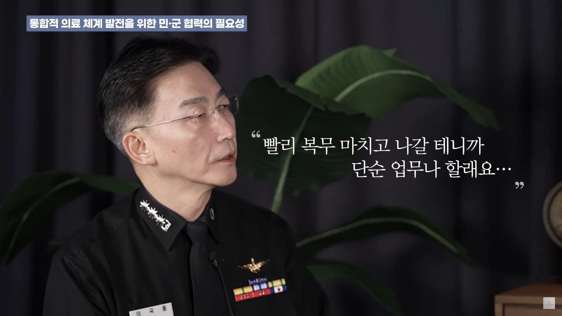 미국에서 자신을 가르친 교수는 4번이나 파병을 다녀왔다며 "군 의료의 고도화는 민간 의료와의 연계로 가능하다"고 말했습니다.