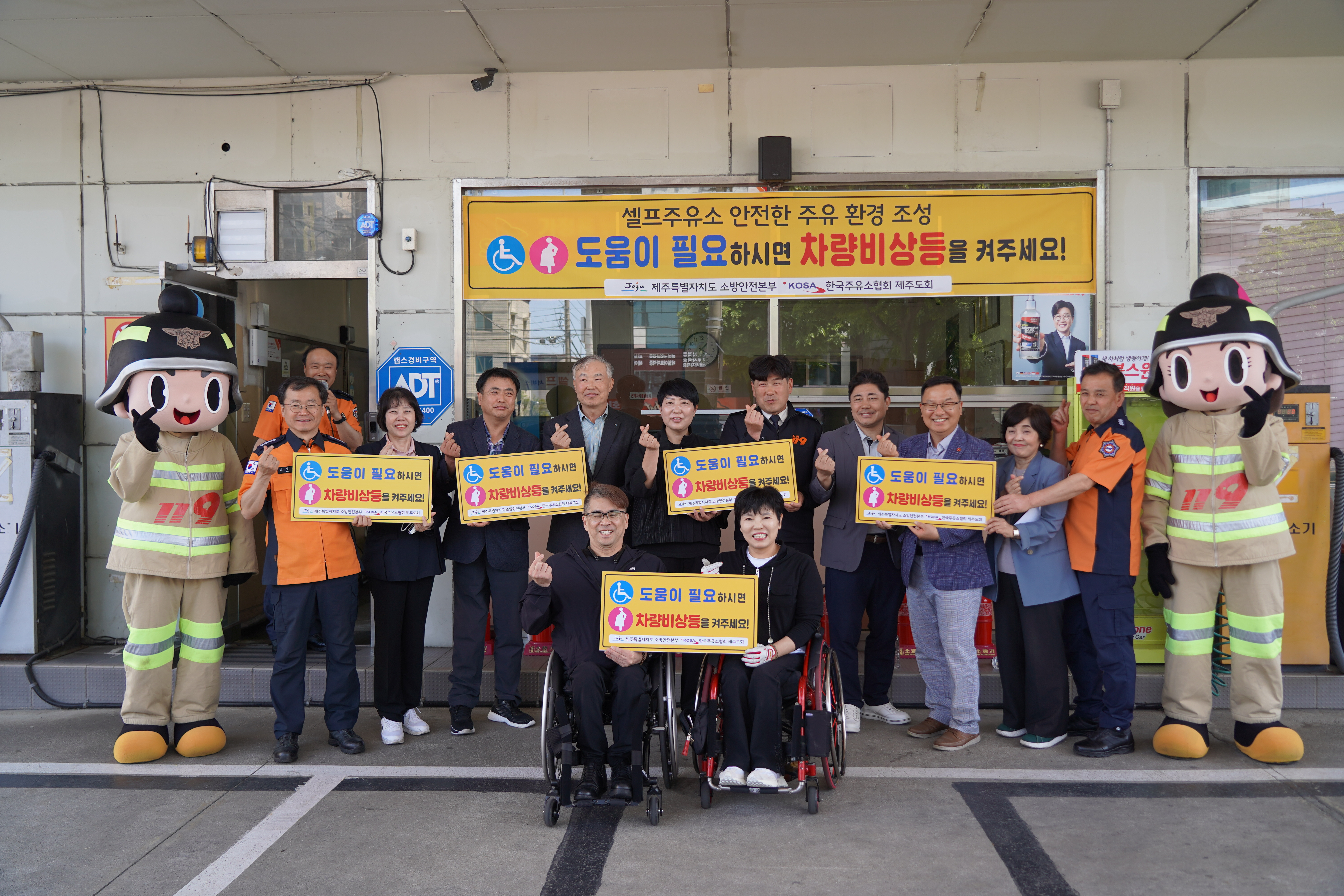 사진=제주소방안전본부 제공.사진=제주소방안전본부 제공.제주도 소방안전본부와 한국주유소협회 제주도회가 도내 셀프주유소 58곳을 대상으로 거동이 불편한 도민을 위한 맞춤형 안전관리 방안을 마