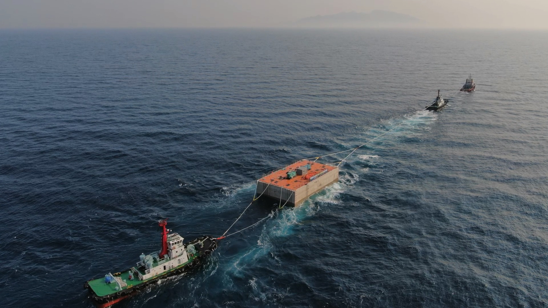 케이슨은 포항 영일만에서 제작돼 예인선을 통해 울릉도로 옮겨졌는데, 총 운송 거리는 약 6,300㎞로 국내 케이슨 공사 중 최장 거리 기록입니다.