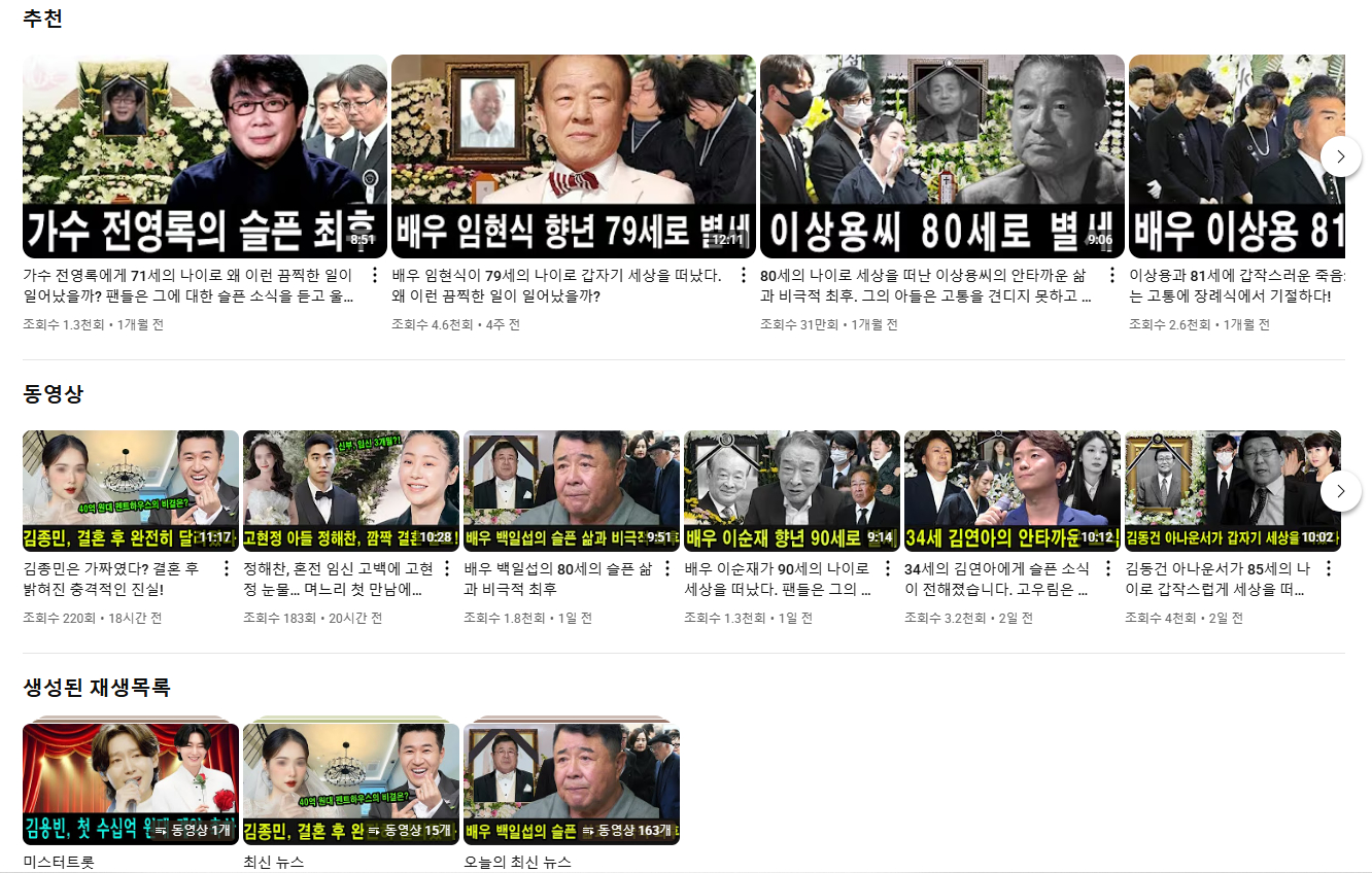 구독자 1만 3,500명을 보유한 해당 채널은 수많은 연예인들의 가짜 부고 소식을 업로드했습니다.