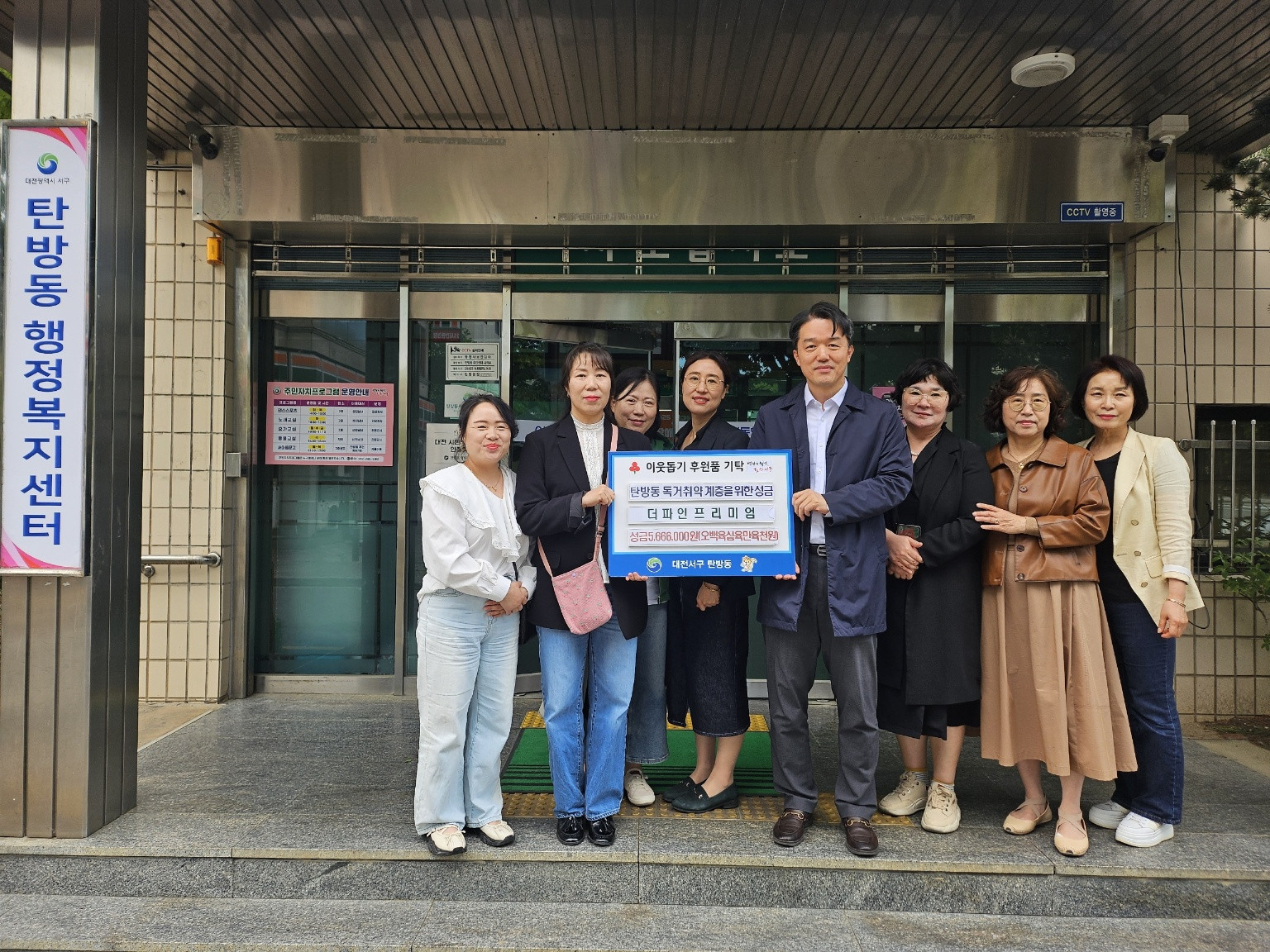 '더파인 프리미엄' 파인네스트, 이웃돕기 성금 566만원 전달[[대전 서구 탄방동 지역사회보장협의체는 지난 2일 건강식품 업체 '더파인 프리미엄'으로부터 5월 가정의 달을 맞아 지역 내 어려운 독거가구를 위해 써달라며 성금 566만6천원을 기탁받았다고 밝혔습니다.