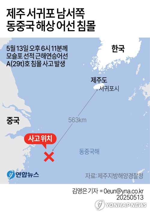 <저작권자(c) 연합뉴스, 무단 전재-재배포, AI 학습 및 활용 금지>[그래픽] 제주 서귀포 남서쪽 동중국 해상 어선 침몰