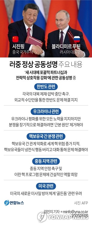 <저작권자(c) 연합뉴스, 무단 전재-재배포, AI 학습 및 활용 금지>[그래픽] 러중 정상 공동성명 주요 내용