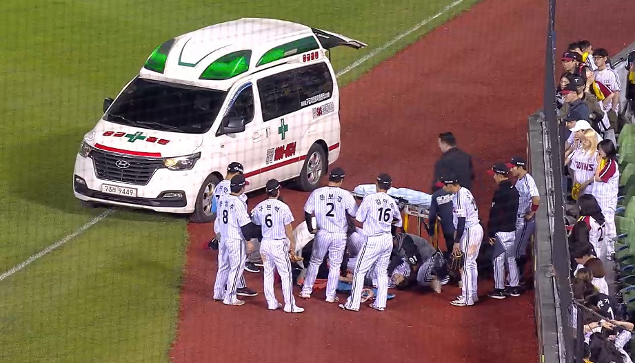 홍창기는 13일 잠실구장에서 열린 키움 히어로즈와의 경기에서 우익수로 나섰고 9회초 박주홍의 공을 잡으려다가 1루수 김민수와 충돌해 병원으로 이송됐습니다.