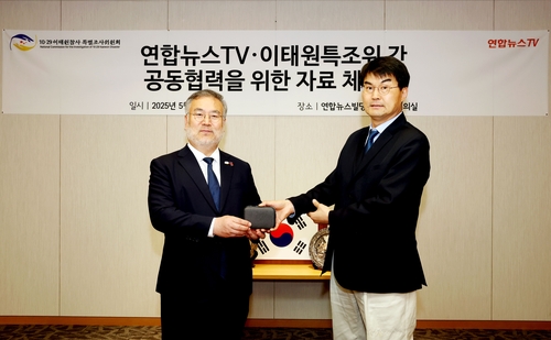이태원참사 특조위 송기춘 위원장(왼쪽)과 연합뉴스TV 안수훈 사장(오른쪽)[이태원참사 특조위 제공][이태원참사 특조위 제공]연합뉴스TV와 10·29 이태원참사 진상규명과 재발방지를 위한 특별조사위원회가 공동협력을 위한 자료 전달식을 열었습니다.