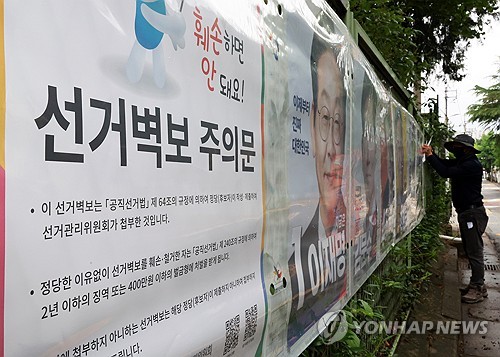 '선거벽보 훼손 안돼요'[연합뉴스 자료사진][연합뉴스 자료사진]전국에서 대선 후보의 벽보가 잇따라 훼손돼 경찰이 수사에 나섰습니다.