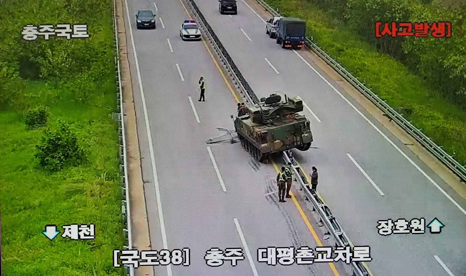 중앙분리대에 올라탄 장갑차대전지방국토관리청 도로교통정보센터 제공대전지방국토관리청 도로교통정보센터 제공오늘(19일) 낮 충북 충주시 앙성면의 한 국도에서 장갑차가 중앙분리대를 들이받는 사고가 발생했습니다.