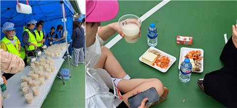 2024 '수육런' 당시 완주자에게 제공된 수육과 막걸리[출처 금천구육상연맹][출처 금천구육상연맹]