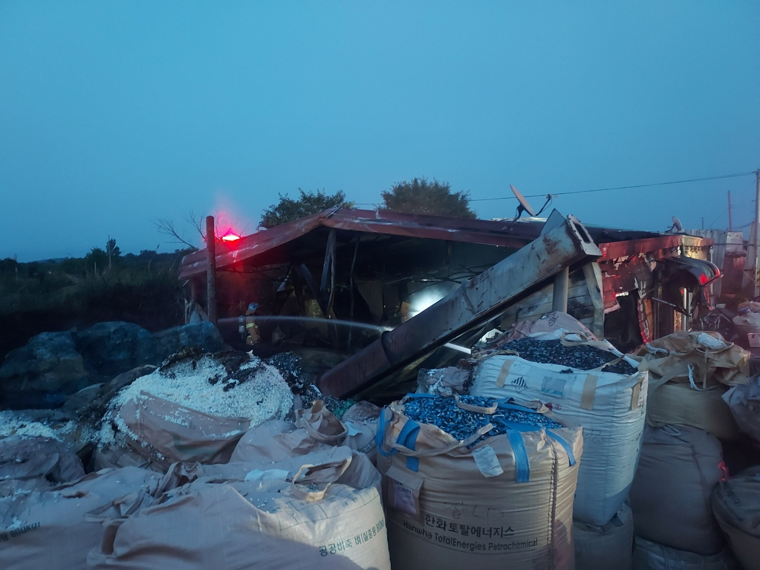 [전북소방본부 제공][전북소방본부 제공]어제(25일) 오후 6시 56분께 전북 익산시 함라면의 한 폐기물 재활용 업체에서 불이 났습니다.