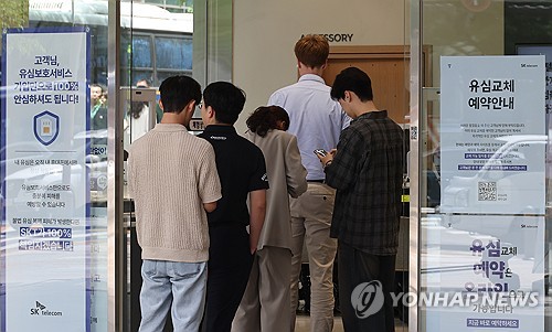 서울 시내 한 SK텔레콤 공식인증 대리점에서 유심 교체를 위해 대기 중인 고객들[연합뉴스 자료사진][연합뉴스 자료사진]
