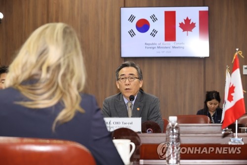 발언하는 조태열 장관(서울=연합뉴스) 최재구 기자 = 조태열 외교부 장관이 18일 서울 종로구 외교부에서 열린 한-캐나다 외교장관 회담에서 발언하고 있다. 2024.7.18 jjaeck9@yna.co.kr(서울=연합뉴스) 최재구 기자 = 조태열 외교부 장관이 18일 서울 종로구 외교부에서 열린 한-캐나다 외교장관 회담에서 발언하고 있다. 2024.7.18 jjaeck9@yna.co.kr한국과 캐나다 외교장관이 전화 통화를 하며 양국관계와 인태정세·고위급 교류 등에 대해 의견을 나눴습니다.