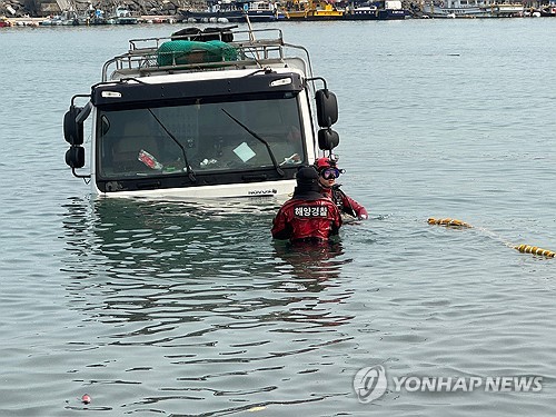화물차는 보트·선박을 바다에 띄우거나 육지로 이동시키기 위한 경사로인 슬립웨이(보트 전개로)에서 어획물을 싣던 중 바다로 미끄러진 것으로 파악됐습니다.