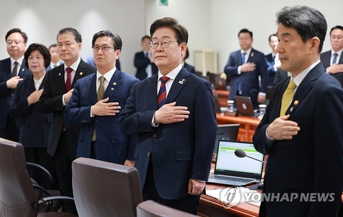 이재명 대통령, 첫 국무회의 주재(서울=연합뉴스) 홍해인 기자 = 이재명 대통령이 5일 서울 용산 대통령실 청사에서 주재한 첫 국무회의에서 국기에 경례하고 있다. 2025.6.5 [대통령실통신사진기자단] hihong@yna.co.kr(서울=연합뉴스) 홍해인 기자 = 이재명 대통령이 5일 서울 용산 대통령실 청사에서 주재한 첫 국무회의에서 국기에 경례하고 있다. 2025.6.5 [대통령실통신사진기자단] hihong@yna.co.kr이재명 대통령이 첫 국무회의를 주재하고 "국민을 중심에 두고 현재 우리가 할 최선을 다하면 된다"고 말했습니다.