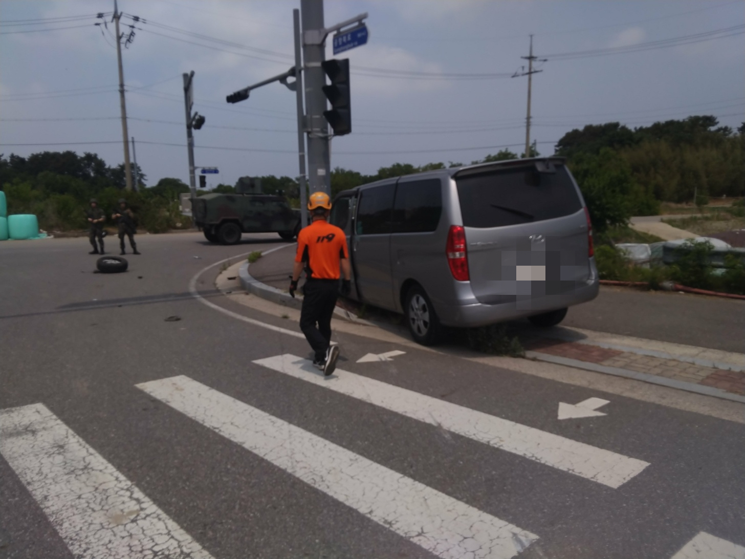 전북 군산도로서 승합차가 전봇대 들이받아 50대 운전자 사망[전북도소방본부 제공·재판매 및 DB금지][전북도소방본부 제공·재판매 및 DB금지]오늘(9일) 오전 11시 10분쯤 전북 군산시 옥서면 한 도로에서 대형 승합차가 전봇대를 들이받는 사고가 발생했습니다.