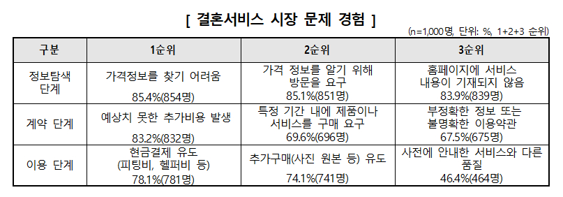 소비자의 71.2%는 스튜디오·드레스·메이크업(일명 스드메) 등 결혼 관련 서비스의 가격 표시가 전반적으로 불충분하다고 응답했습니다.
