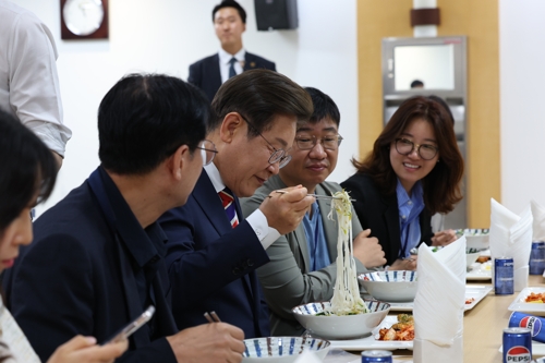 이 대통령은 이날 오전 한국거래소 방문을 마치고 서울 용산 대통령실로 복귀해 기자식당을 찾았습니다.