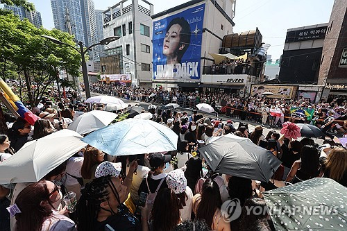 하지만 BTS 멤버 4명이 이틀 간 잇따라 전역하면서, 이들의 복귀를 기념하려는 팬들이 모여 평소보다 훨씬 더 많은 인파가 몰렸습니다.