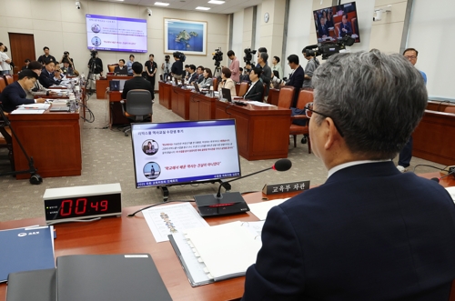 <저작권자(c) 연합뉴스, 무단 전재-재배포, AI 학습 및 활용 금지>'리박스쿨' 관련 질의하는 더불어민주당 김준혁 의원