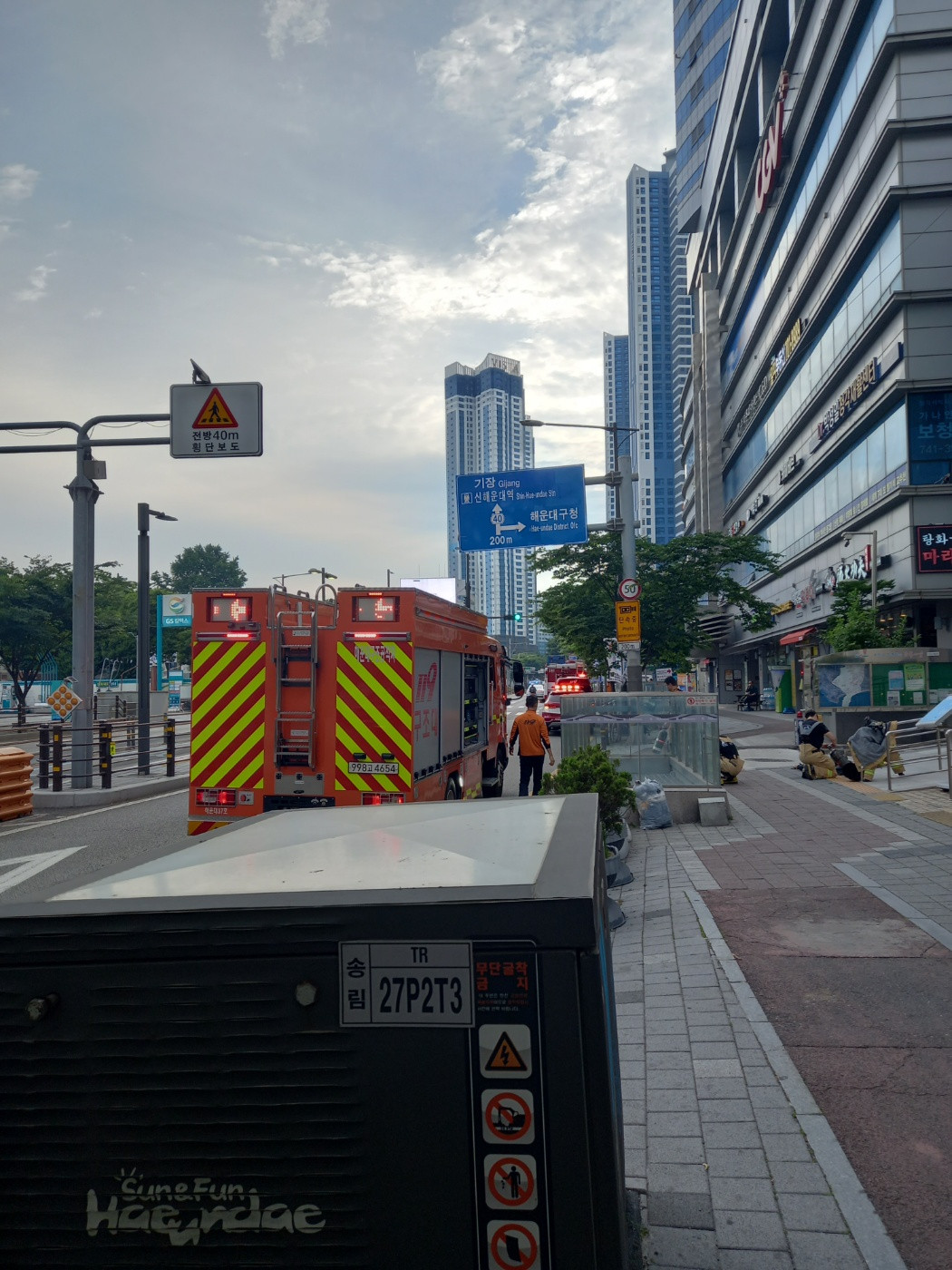 부산 해운대에 출동한 소방차[시청자 제공][시청자 제공]오늘(12일) 새벽 5시 10분쯤, 부산시 해운대구 도시철도 2호선 해운대역 내 변전소에서 연기가 발생했습니다.