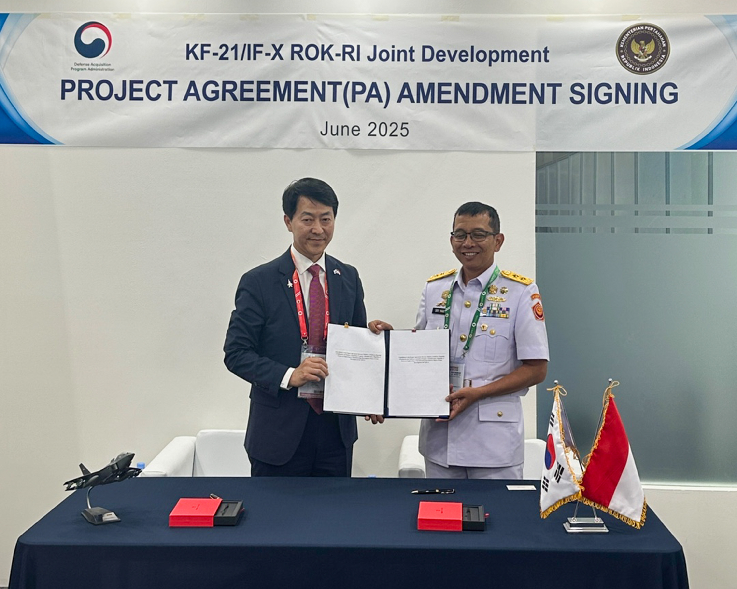 이에 따라 방위사업청 한국형전투기사업단장과 인도네시아 국방부 예비전력총국장은 작년 8월 방위사업추진위원회 의결 결과를 반영한 인도네시아 분담금 비율 조정에 대한 양국 간 '공동개발 기본합의서 개정안'에 서명했습니다.
