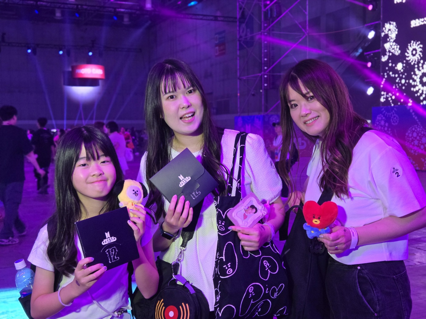 이들은 각각 자신이 가장 좋아하는 멤버인 '최애'를 형상화한 캐릭터 인형을 가방에 달고 행사장 곳곳을 즐겼습니다.