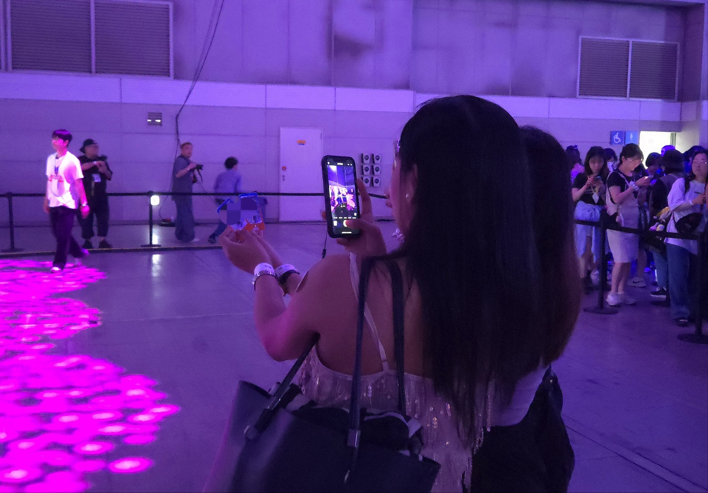 BTS 페스타에 참여한 팬들이 인증사진을 찍고 있는 모습