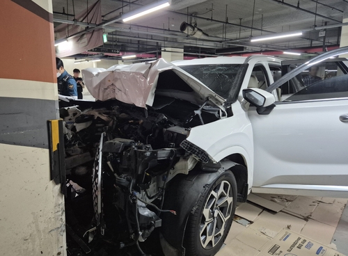 파손된 차량[인천소방본부 제공. 재판매 및 DB 금지][인천소방본부 제공. 재판매 및 DB 금지]오늘(13일) 오후 3시 54분쯤 인천시 부평구의 한 대형마트 지하주차장에서 80대 운전자 A씨가 몰던 스포츠유틸리티차(SUV)가 기둥을 들이받는 사고가 났습니다.