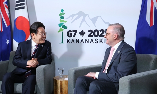 이재명 대통령, 호주 총리와 정상회담[연합뉴스 제공][연합뉴스 제공]주요 7개국(G7) 정상회의 참석차 캐나다를 방문 중인 이재명 대통령은 현지시간 16일 오후 앤서니 앨버니지 호주 총리와 정상회담을 했습니다.