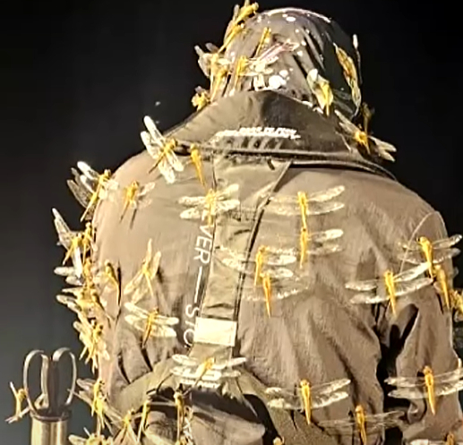하늘을 가득 뒤덮은 잠자리는 사람 몸에도 잔뜩 달라붙었습니다.