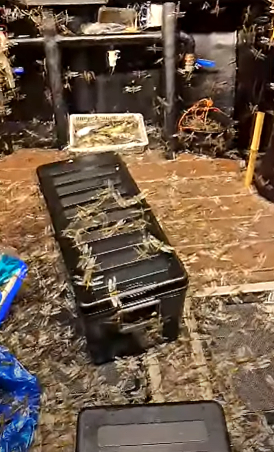 당시 영상을 보면 수천 마리 규모로 추정되는 잠자리 떼가 집어등을 밝힌 낚싯대에 몰려들었습니다.