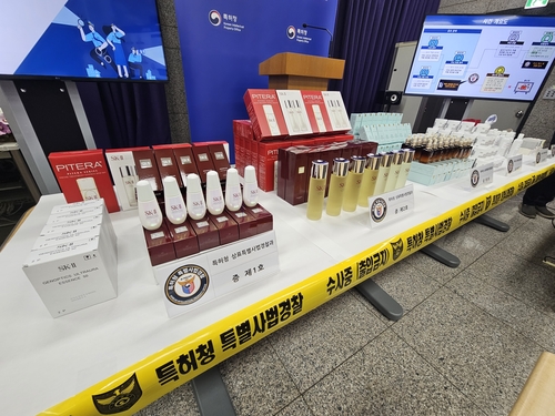 특허청은 압수한 화장품의 성분 분석 결과, 유해 성분이 검출되지는 않았으나 주요 원료, 내용량 등이 기준치에 미달하는 일명 '맹물' 제품이었다고 전했습니다.