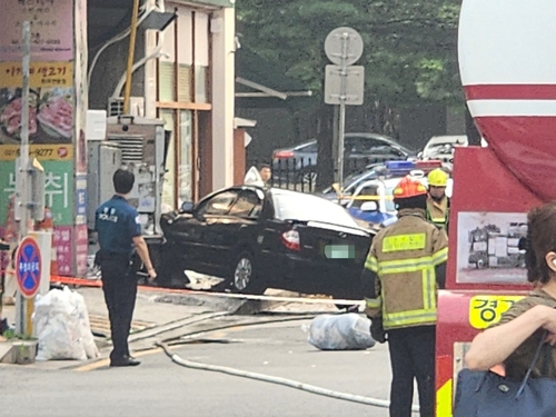 A씨는 경찰에 "아내를 내려주고 멈춰있다 출발하는데 갑자기 급발진해 핸들을 꺾어 건물 시설물과 들이받았다"고 진술한 것으로 전해졌습니다.