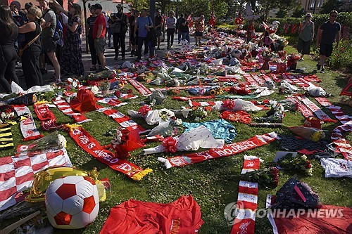 리버풀 홈 경기장에서 조타를 추모하는 축구 팬들[AP=연합뉴스][AP=연합뉴스]스페인에서 교통사고로 사망한 잉글랜드 프리미어리그(EPL) 리버풀 공격수 디오구 조타가 과속했을 가능성이 있다는 경찰의 초기 조사 보고서가 나왔습니다.