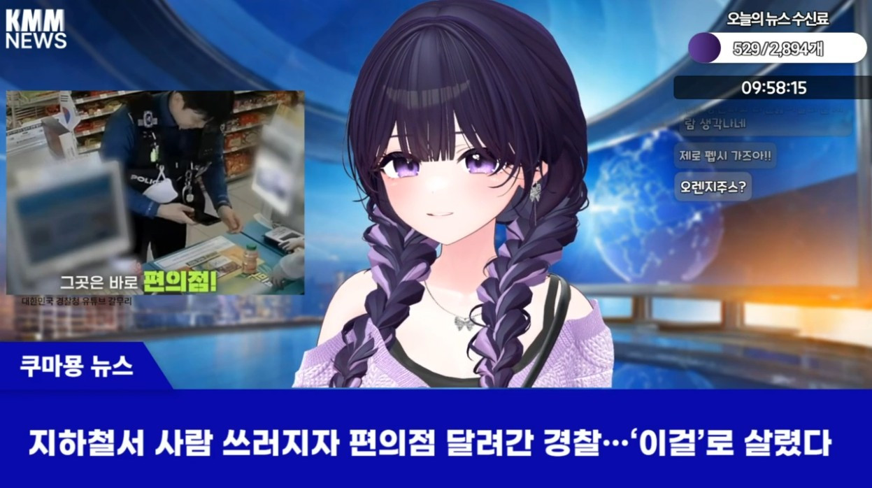 SOOP ‘뉴스 아가씨’ 쿠마묭이 아침 뉴스 콘텐츠를 진행하는 모습[SOOP 제공][SOOP 제공]버추얼(virtual) 캐릭터로 활동하는 ‘쿠마묭’은 지난해 1월 SOOP에서 방송을 처음 시작한 바로 다음 날부터 아침 뉴스 고정 콘텐츠로 유저들과 만나면서 이제는 SOOP을 대표하는 인물이 되고 있습니다.