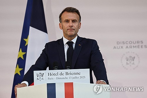 국방력 강화 방안 발표하는 마크롱 대통령(AFP=연합뉴스) 에마뉘엘 마크롱 프랑스 대통령이 13일(현지시간) 국방부에서 향후 국방 예산 증액 등 국방력 강화 방안을 발표하고 있다. 2025.07.13.(AFP=연합뉴스) 에마뉘엘 마크롱 프랑스 대통령이 13일(현지시간) 국방부에서 향후 국방 예산 증액 등 국방력 강화 방안을 발표하고 있다. 2025.07.13.에마뉘엘 마크롱 프랑스 대통령은 13일(현지시간) 자체 국방력 강화를 위해 오는 2027년까지 국방 예산을 640억 유로(약 103조원)로 늘리겠다고 밝혔습니다.