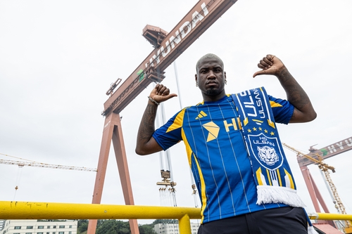 울산 HD는 오늘(18일) 말컹과의 계약을 발표하며 HD현대중공업의 1600톤급 초대형 '골리앗 크레인' 앞에서 포즈를 취한 말컹의 사진을 게재했습니다.