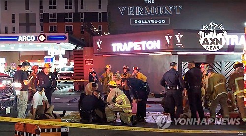 19일 LA 이스트 할리우드 지역에서 발생한 차량 돌진 사건 현장[AXN NEWS/via REUTERS(로이터)=연합뉴스. 재판매 및 DB 금지][AXN NEWS/via REUTERS(로이터)=연합뉴스. 재판매 및 DB 금지]미국 로스앤젤레스 이스트 할리우드에서 차량이 인파 속으로 돌진해 30명 이상이 다쳤습니다.