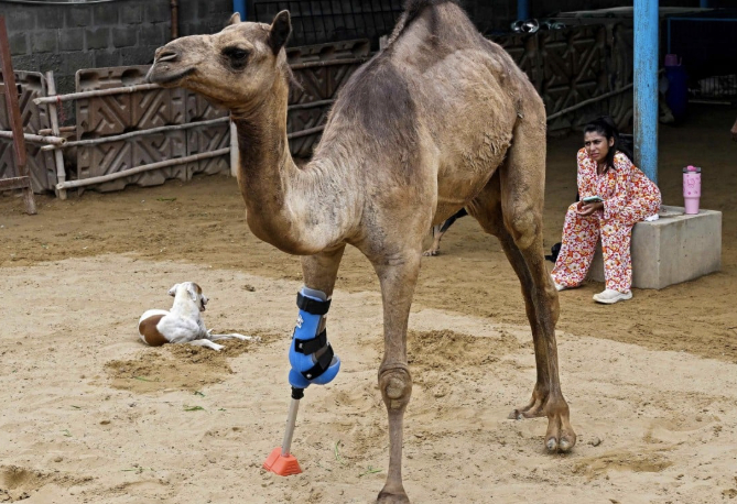 파키스탄에서 낙타처럼 몸집이 큰 동물이 의족을 착용한 것은 이번이 처음입니다.