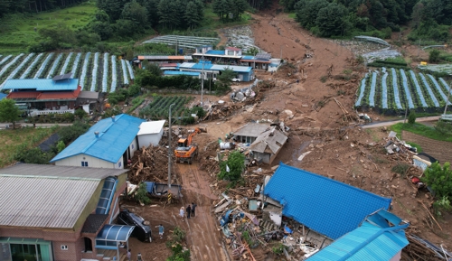 산사태가 발생한 가평 신상3리 마을[연합뉴스 제공][연합뉴스 제공]지난주 기록적인 물벼락으로 곳곳에서 산사태가 발생한 가운데, 당분간도 산사태 위험은 계속될 전망입니다.