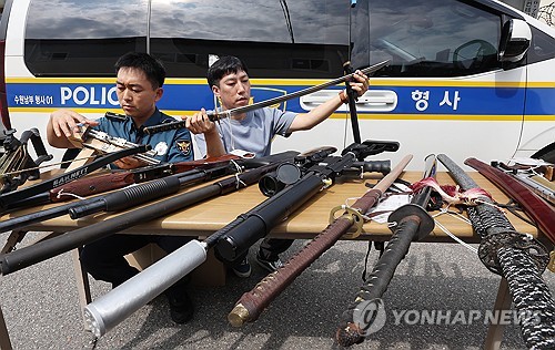 [연합뉴스 제공][연합뉴스 제공]총기·도검 등 불법 위해물품의 국내 반입이 지난해 크게 늘어난 것으로 나타났습니다.