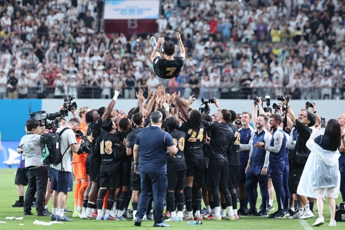 토트넘 동료들의 헹가래를 받는 손흥민 [서대연 기자/연합뉴스]토트넘 동료들의 헹가래를 받는 손흥민 [서대연 기자/연합뉴스]경기가 1-1로 끝난 가운데, 종료 휘슬이 울리고 그라운드로 걸어 나온 손흥민은 토트넘 후배 양민혁을 비롯해 동료들을 다시 한번 끌어 안았고, 토트넘 선수들은 손흥민을 헹가래 치며 지난 10년간 헌신한 손흥민에 감사를 전했습니다.