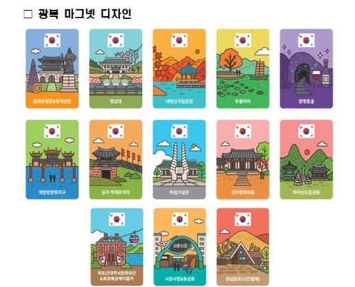 오는 11일부터 17일까지 서울 광화문광장, 경기 두물머리, 천안 독립기념관, 전주 한옥마을 등 13곳 관광지를 방문하면 기념 자석을 받을 수 있습니다.